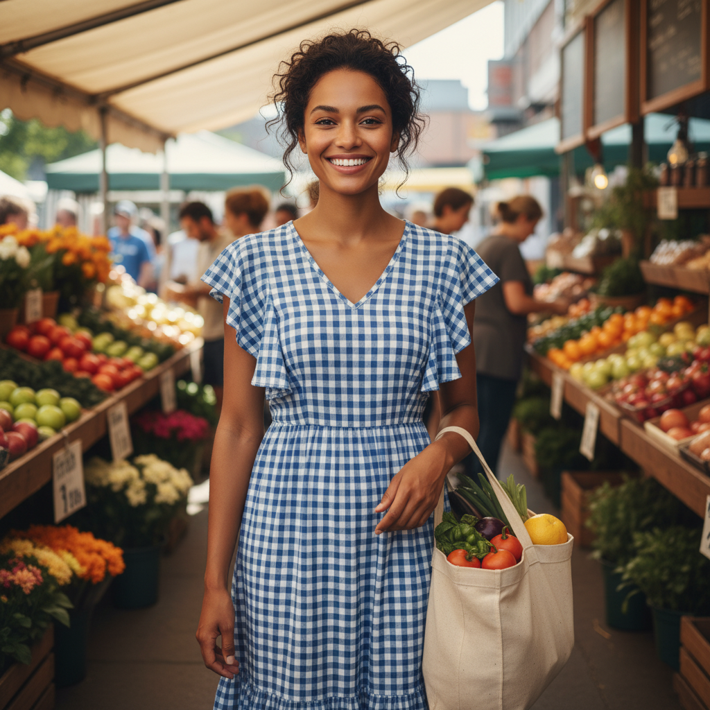 Embrace playful sophistication with the Blue Gingham Ruffle Sleeve Midi Dress, a charming piece that brings instant cheer to your wardrobe. The timeless blue and white check pattern is a summer classic, perfect for everything from garden parties to relaxed weekend outings.