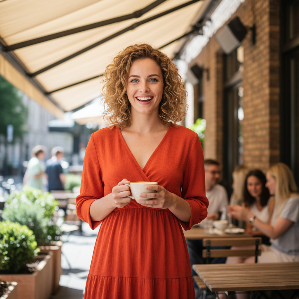 Make a memorable entrance in this vivid, statement-making gown, featuring a bold burnt orange hue that radiates warmth and energy. The comfortable, flowing fabric and dynamic design make it an instant eye-catcher.