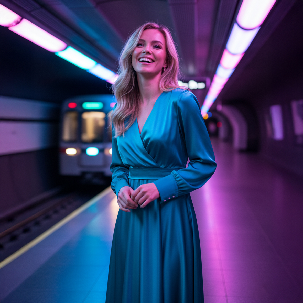 The elegant wrap V-neckline provides a flattering structure, complemented by the perfectly tailored long sleeves that finish with delicate buttoned cuffs. A defined empire waist cinches the silhouette, creating an elongated and graceful line. Whether you’re attending a holiday party, a wedding reception, or a formal dinner, this dress ensures true glamour and unforgettable style. Add this showstopper to your collection and embrace a color that speaks volumes.