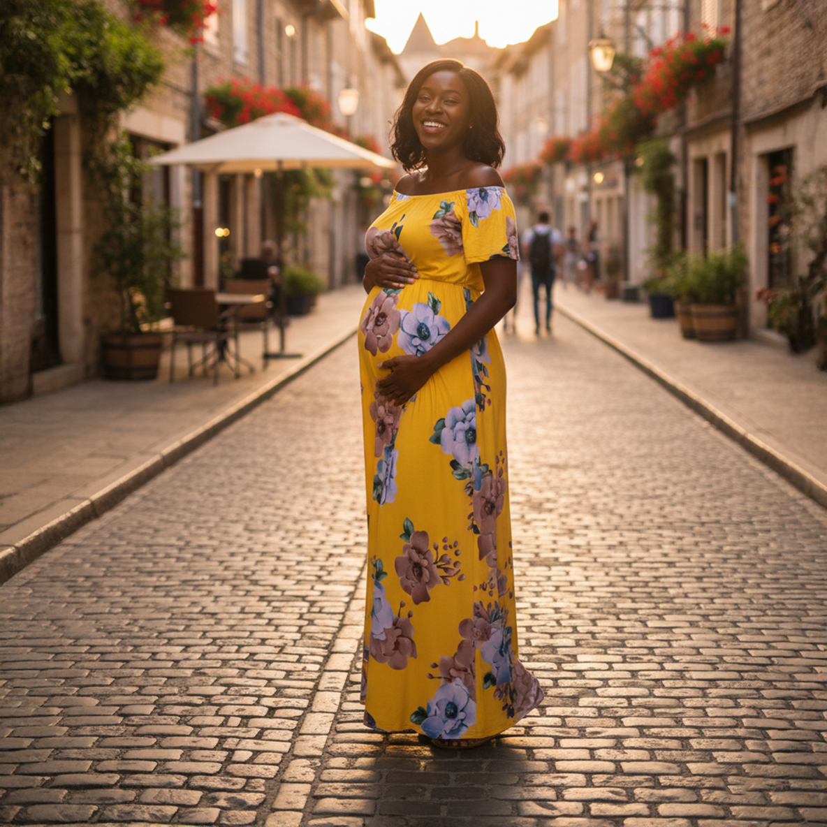 The design includes a flattering off-shoulder neckline that highlights your collarbone and soft short sleeves. The defined empire waist creates a long, graceful line, flowing down to a comfortable maxi-length skirt. Made from light, stretchy fabric, this piece is ideal for all your warm-weather events, from garden parties and summer weddings to resort vacations. Slip into this dress and feel instantly chic and happy!