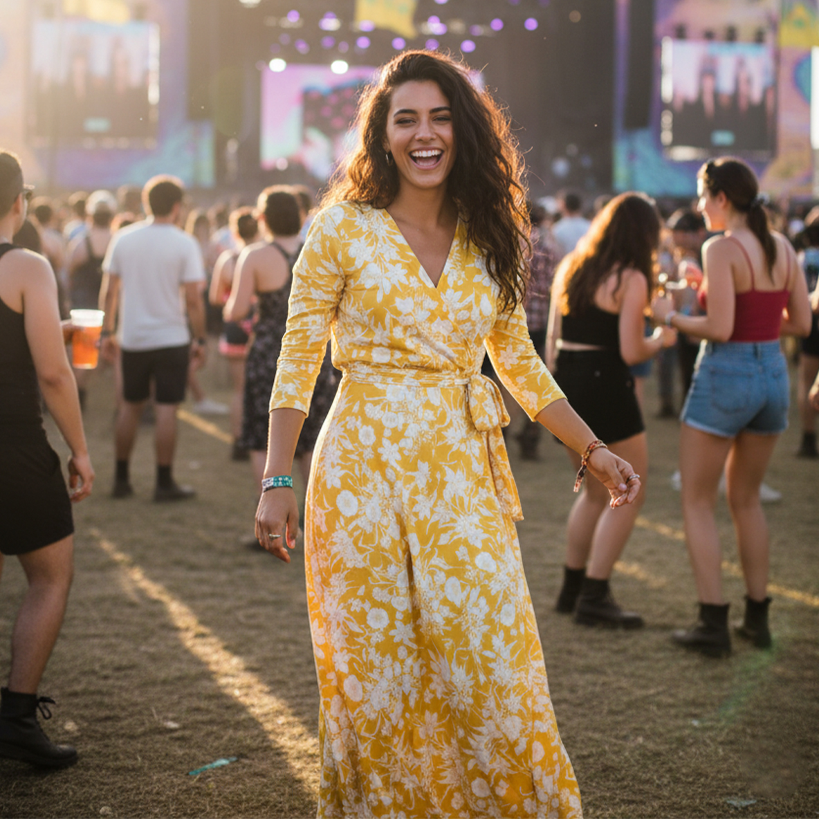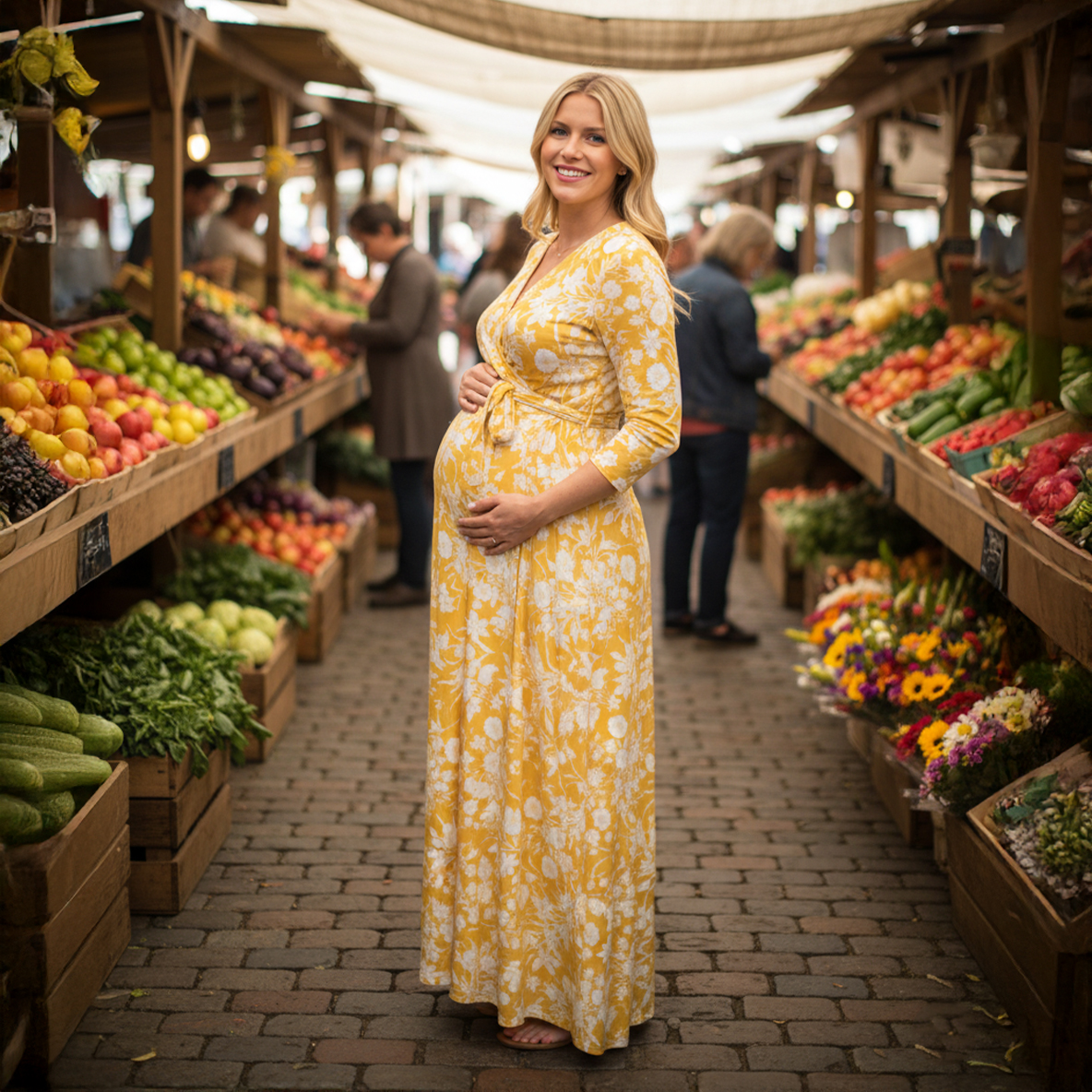The design features a classic full wrap silhouette with a flattering V-neckline and an adjustable fabric tie-waist, allowing you to customize your fit perfectly. The maxi length and easy three-quarter sleeves strike the perfect balance between relaxed comfort and polished style. It’s the ideal choice for weekend getaways, summer weddings, or adding a burst of color to your everyday look. Grab this cheerful dress and feel your spirits lift instantly!